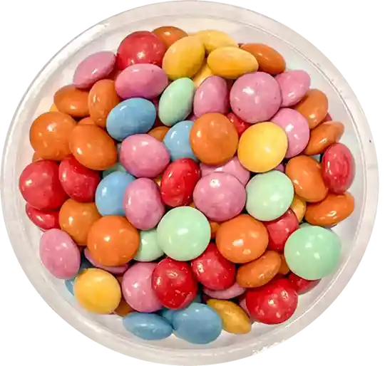 Linsen aus Schokolade dragiert bunt mit Farbstoff